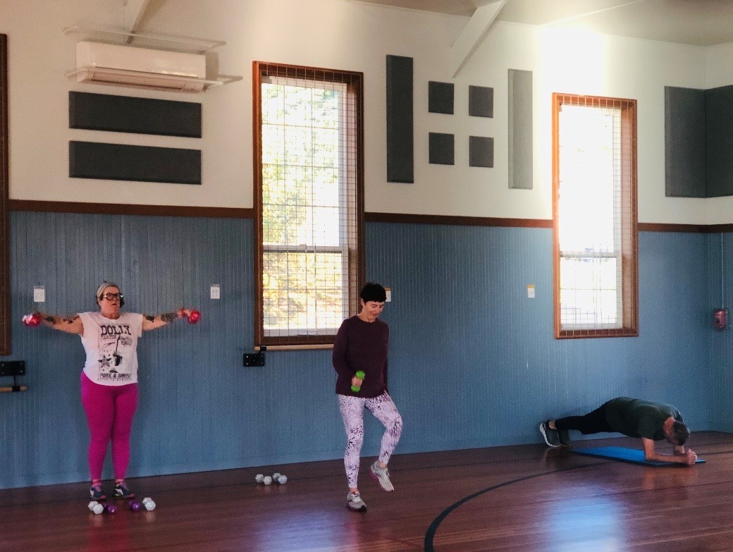 This class encourages a total body workout for all fitness levels. All movements are adapted for standing or sitting and are safely performed using a variety of modalities. Benefits include muscle strength/endurance, aerobic conditioning,increase in balance, joint flexibility, range of motion, decreased loss of bone mass, increased core strength and elevated mood levels. Friendly and fun for all.